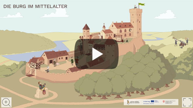 Erleben Sie die interaktive Webanwendung „Die Burg im Mittelalter“ ganz bequem von zu Hause aus. Klicken Sie die Figuren auf dem Startbildschirm an und entdecken Sie Schritt für Schritt das Leben auf einer mittelalterlichen Burg.